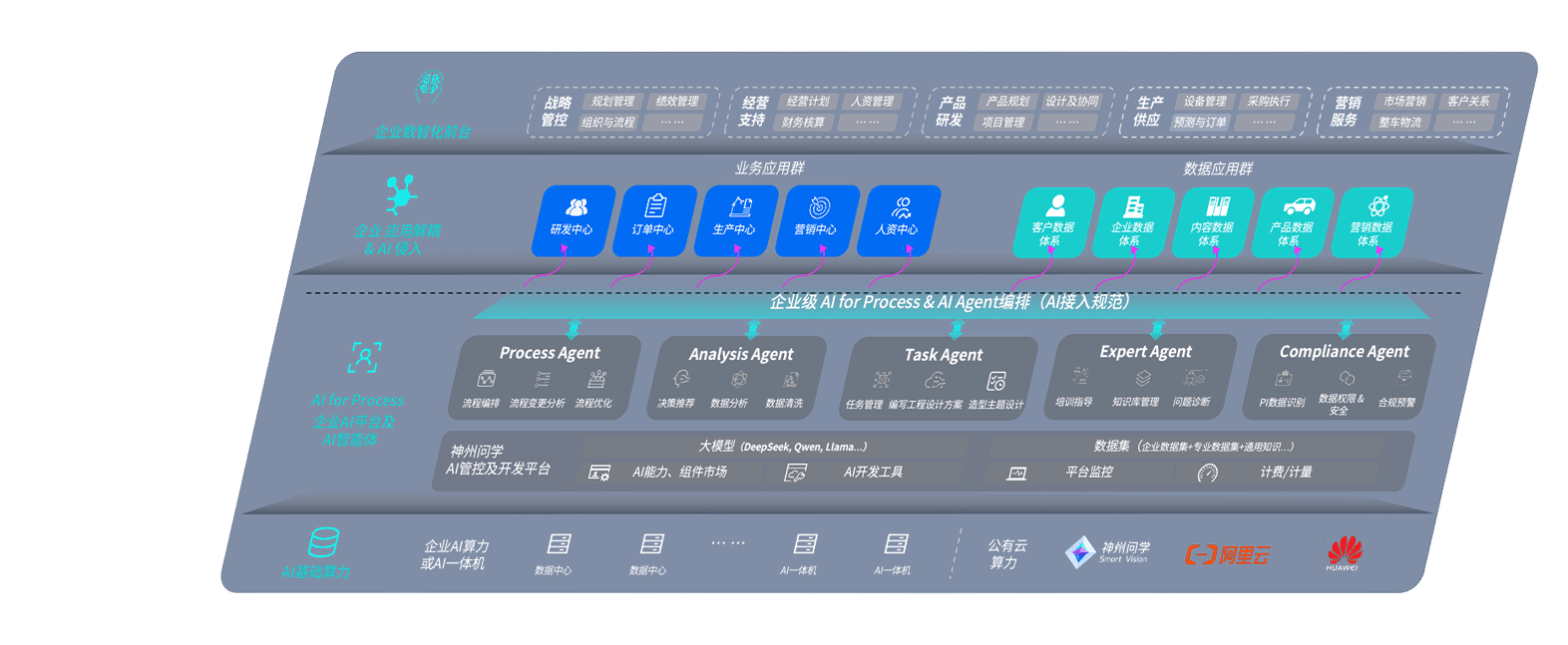 端到端的一站式AI工作空间深度融合了从企业战略规划到日常经营的全流程业务板块,,,定向解决车企内部领域多、、、、部门多、、、链条长、、、、场景碎片化等难题,,支持车企快速构建以AI为核心的生产力写作体系,,,实现任务执行与AI能力的无缝集成与交互